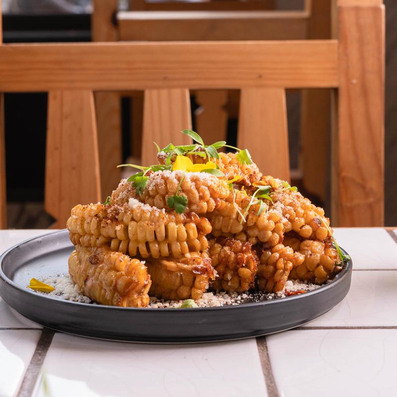 Fresh corn 'ribs', spicy chingona aioli, Cotija cheese, herbs.